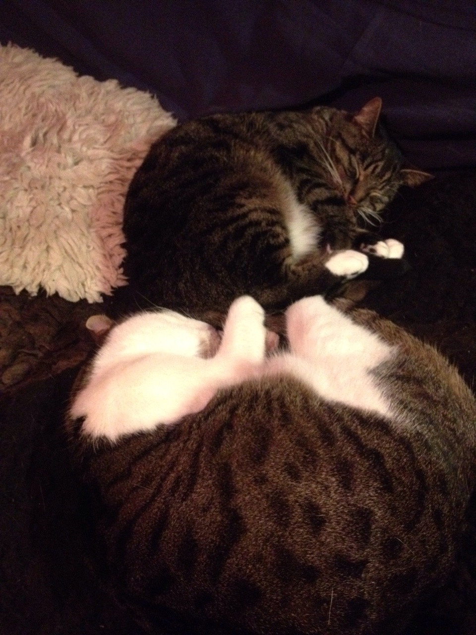 Yin und Yang stehen bei mir in kompletter Dysharmonie. Sogar meine Körperhaltung ist krumm, wie soll denn da die Seele im Gleichgewicht sein. An den beiden Kätzchen will ich mir ein Beispiel nehmen. Liegen sie nicht in vollkommenem Frieden, in Ruhe, Eintracht und Gelassenheit?