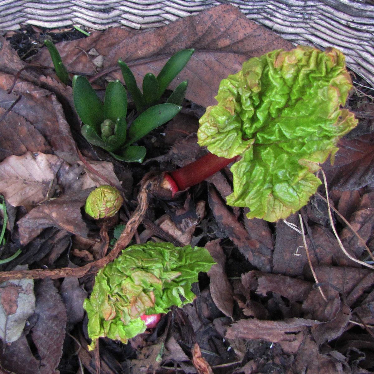 • Es ist leider nicht mein Rhabarber, sondern eine Nachbarin hat in einem alten Wäschekorb auf der Straße ein „Beet“ eingerichtet und dort u.a. den Rhabarber gepflanzt. Er wächst dort frei und fröhlich vor sich hin. Allerdings ist es in der Innenstadt einer Großstadt ja deutlich wärmer als draußen auf dem Land. Da müsste man ihn wohl abdecken, wenn er schon so früh treiben soll.