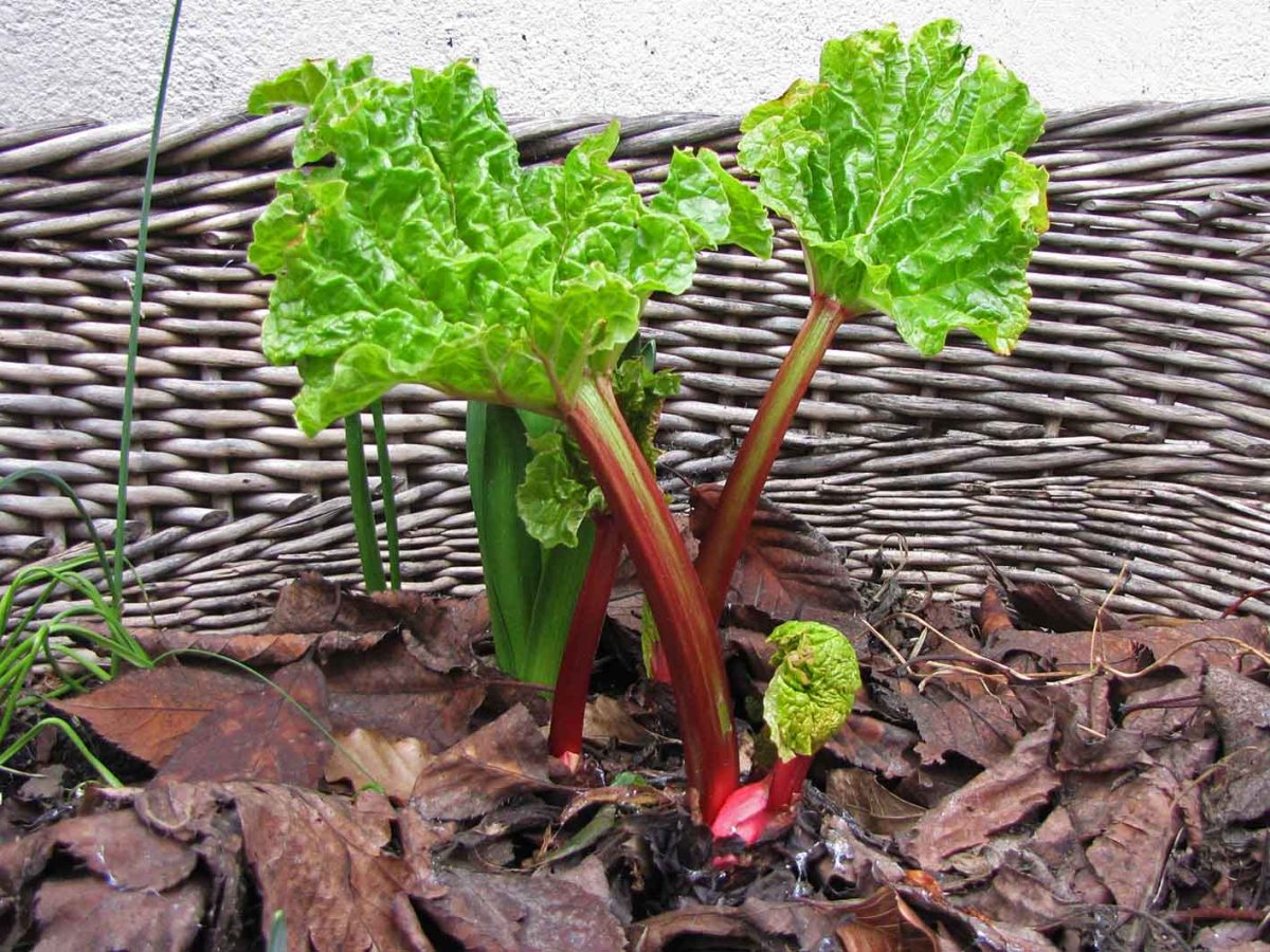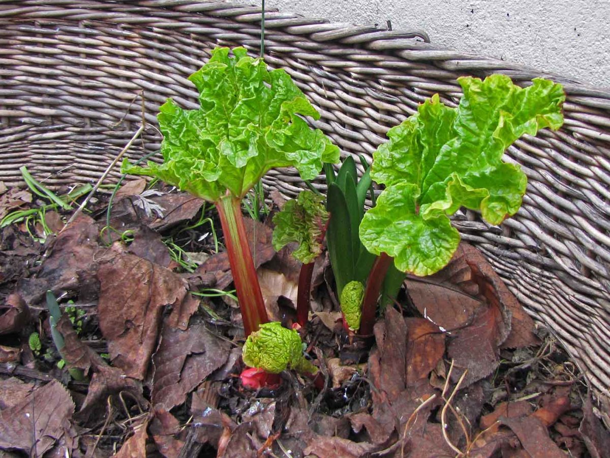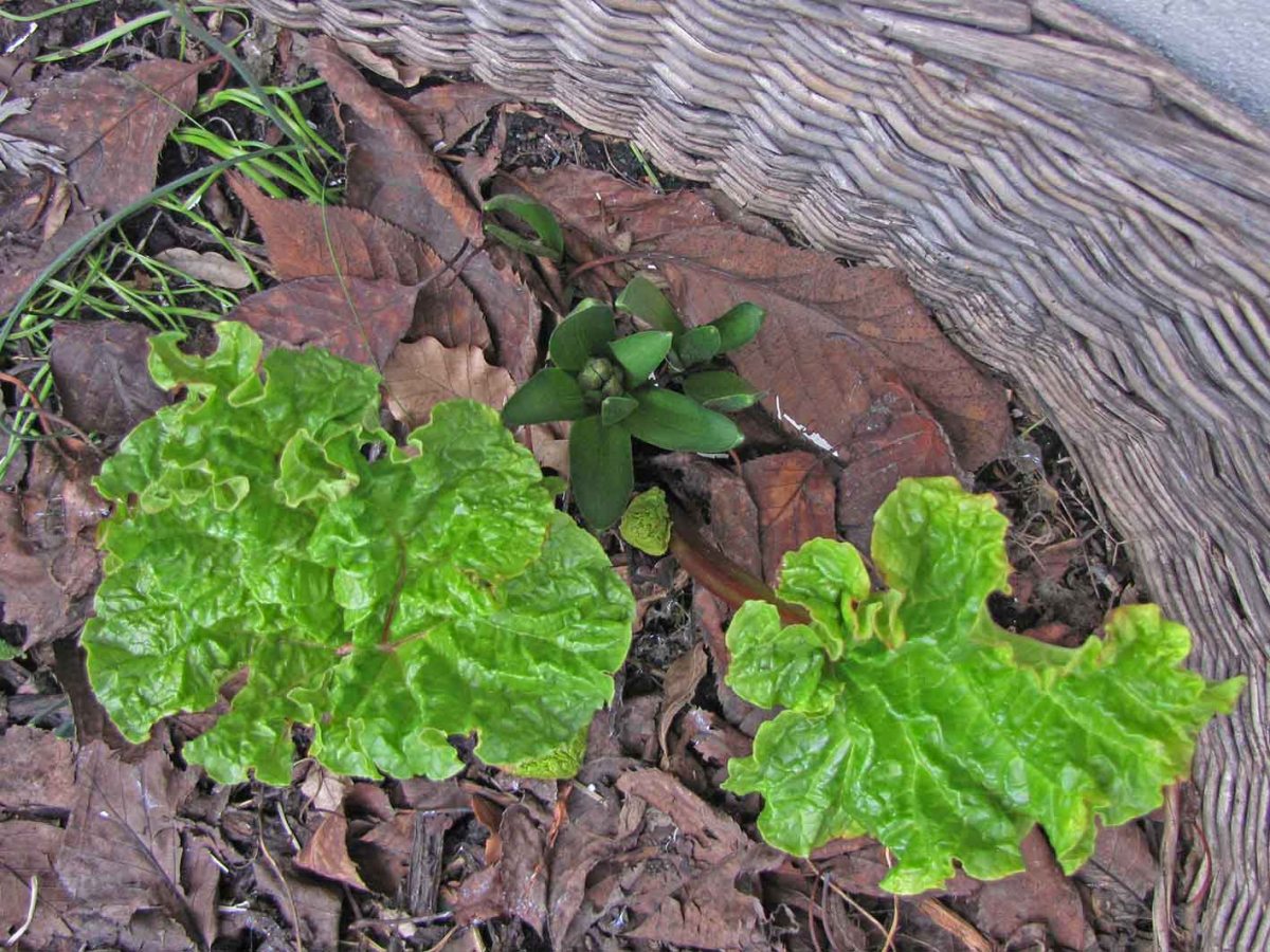 Warum dieser innerstädtische Rhabarber hier schon so weit ist? Vielleicht ist es die Lage vor der wärmenden Hauswand.