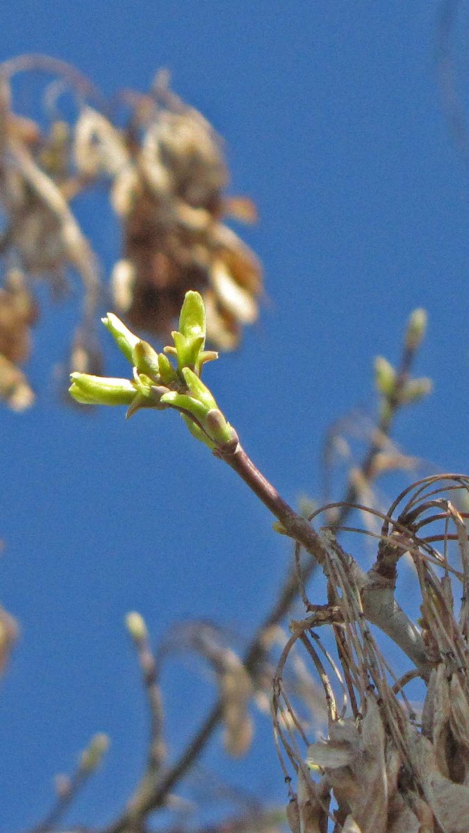 Fest hält der Ahorn sie, die vertrockneten Früchte des vergangenen Jahres. Doch neue Triebe sprießen sacht und unaufhaltsam. Noch sind sie nur für jene sichtbar, die achtsam und gemessenen Schrittes an diesem Baum vorübergehen.