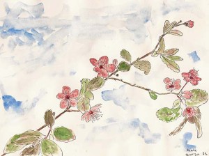 Am Sonntag habe ich mich an weiteren Linienzeichnungen versucht. Von einem Spaziergang hatte ich mir einen hübschen rosablühenden Kirschzweig und einem Ahornzweig (einen Berg-Ahorn-Zweig?) mit nach Hause genommen.