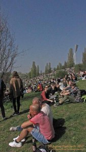Als Schlusswort ein Beispiel dafür, wie ich positives Denken trainiere: Letzten Montagmorgen bin ich erneut durch den Park gelaufen und wollte sehen, wie sehr er durch das bunte Treiben in Mitleidenschaft gezogen wurde. Der Morgen war kühl und grau. Dort, wo gestern noch die Bands spielten, machten heute ein paar Mütter ihre Rückbildungsgymnastik. Am Rande saß ein Obdachloser, noch in seinem Schlafsack gewickelt. Die Flaschensammler waren wohl in der Nacht noch umhergegangen, denn Pfandflaschen lagen keine mehr herum. Und ja, die Wiese war vermüllt, aber nicht so schlimm, wie ich es befürchtet hatte. Von den vielen tausend Besuchern hat die überwiegende Mehrzahl ihren Müll mitgenommen. Das ist doch ein gutes Zeichen, oder?