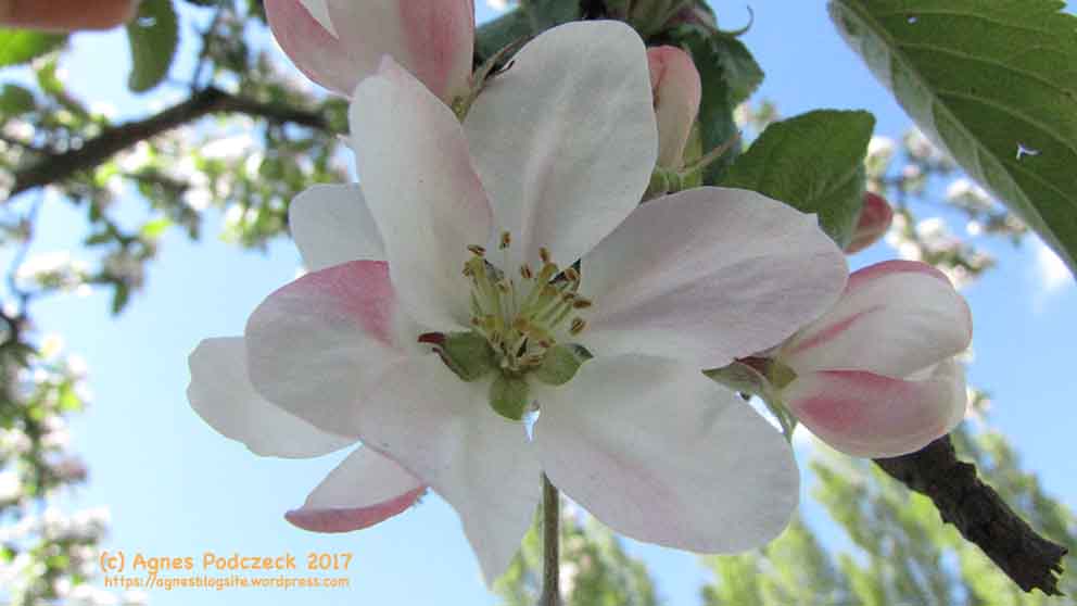 Die Apfelbäume blühen, Frost, Hagel und Schnee zum Trotz. Mir läuft allein beim Anblick das Wasser im Mund zusammen. Möge die künftige Ernte reich ausfallen.