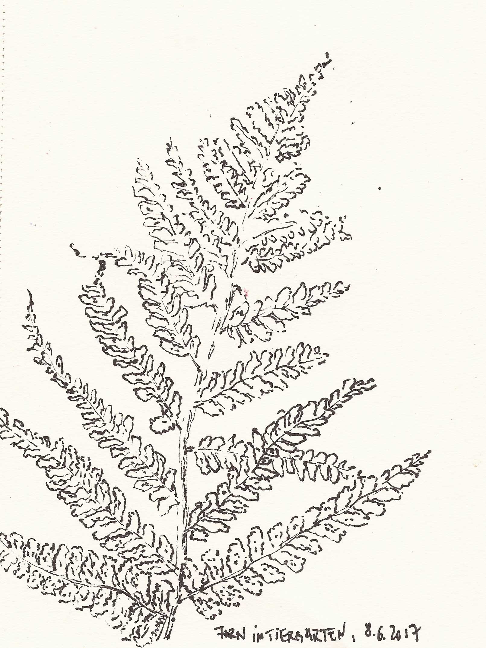20170608_Farn1 Juni 9, 2017 Zwei kleine Draußenskizzen 1611 × 2148 Farn, Skizzenbuch A5, Fineliner, 08.06.2017, (c) Agnes Podczeck