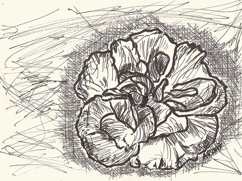 Rosenblüten eignen sich perfekt für Zeichenübungen und sind derzeit überall in der Stadt zu finden. Jedoch – je nach Windstärke halten auch diese Modelle nie wirklich still und an locker bewölkten Tagen muss man auch mit dem Wechsel von Licht und Schatten zurechtkommen.