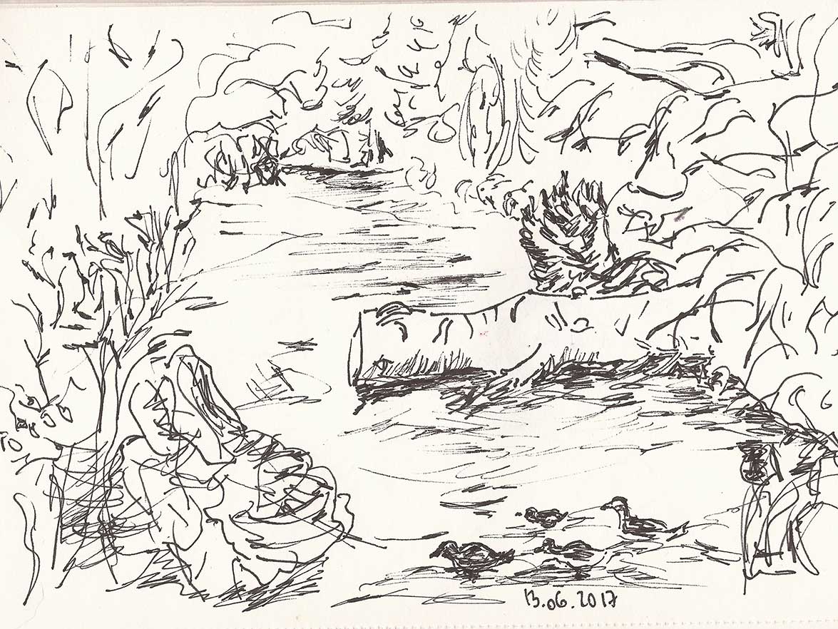 Im Tiergarten Juni 15, 2017 Tiergarten 1175 × 882 Im Tiergarten, Skizzenbuch A5, Fineliner, 13.06.2017, (c) Agnes Podczeck
