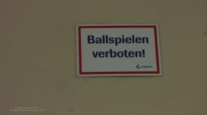 BALLSPIELEN VERBOTEN, Schild in einem Berliner Hausdurchgang
