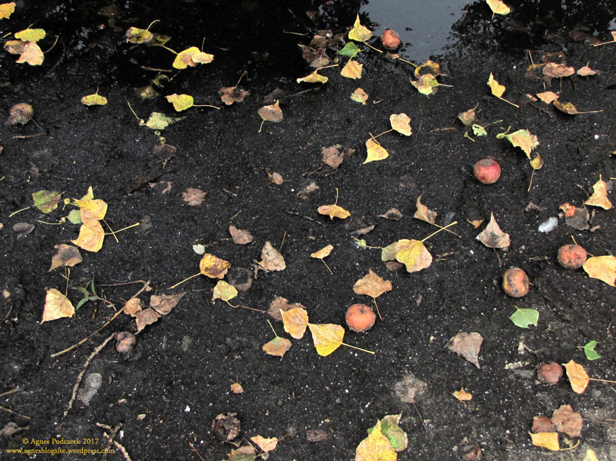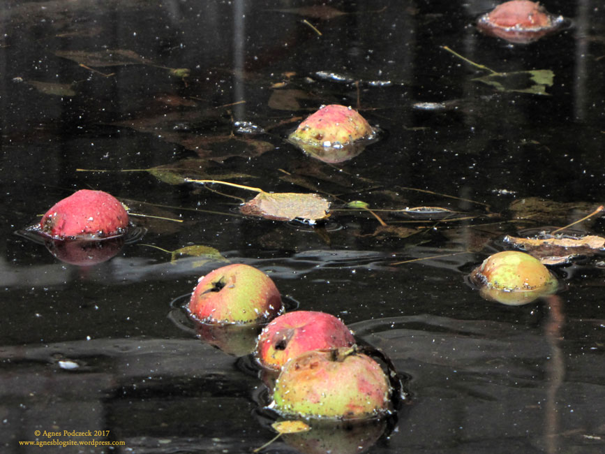 Wenn die Falläpfel nicht bereits gammeln und schimmeln, dann lese ich sie gern auf. Besonders wenn sie noch nicht ganz reif sind, schmecken sie so herrlich sauer, dass mir auch jetzt beim Schreiben das Wasser im Munde zusammenläuft. Auch so eine Freude des frühen Herbstes.