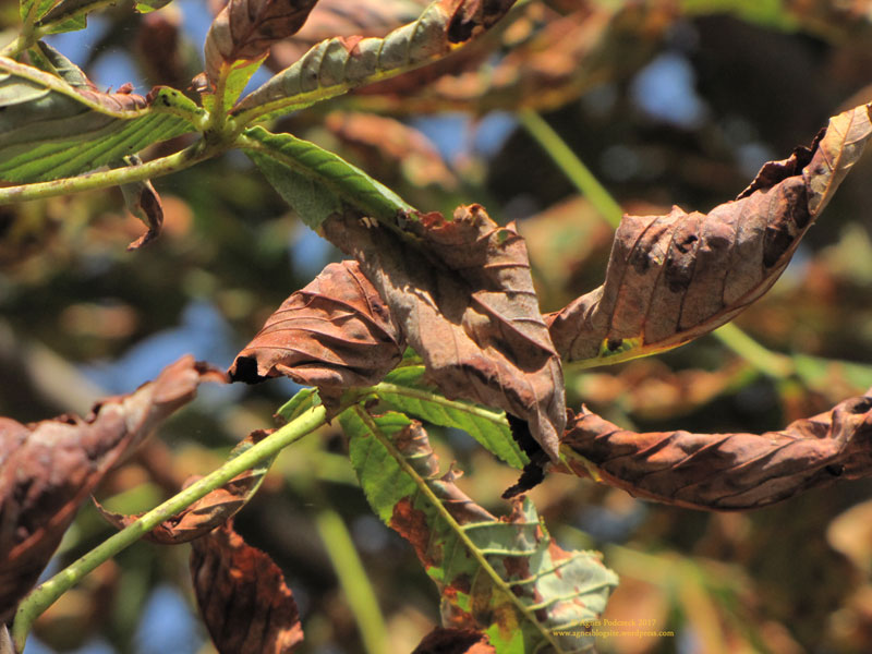 Die Kastanienbäume vertragen ja die Miniermotte schon ganz gut. Eine Zeit lang wurden die Blätter schon Anfang August braun ….