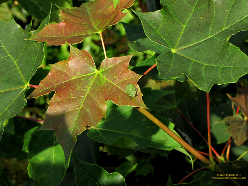Die Kastanienbäume am Prenzlauer Berger Falkplatz fand ich zu vergangener Woche fast unverändert. Ein Baum scheint der Rosskastanienminimiermotte besonders zu trotzen und zeigt fast noch fleckenarme Blätter. In dem Zusammenhang danke ich besonders Myriade und Clara, die mich auf diese kaum einzudämmende Kastanienplage hingewiesen haben. Ich hatte die braunen Blätter vergangene Woche froh-naiv für frühe Herbstboten gehalten.