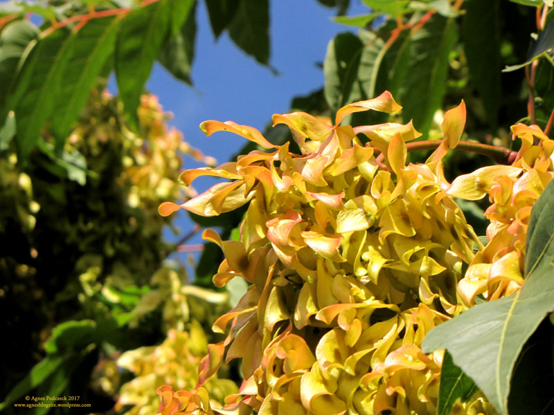 1. Hallo Agnes, heute habe ich es geschafft, unter Kastanienbäumen lang zu gehen. Du kannst sicher sein, im Süden sind die Bäume kein bisschen besser – ich sah nur eingerollte braune Überbleibsel an den Ästen hängen. Ich hatte keinerlei Bedürfnis, einen Fotoapparat zu zücken. – Es ist erstaunlich, dass die Bäume überleben.
