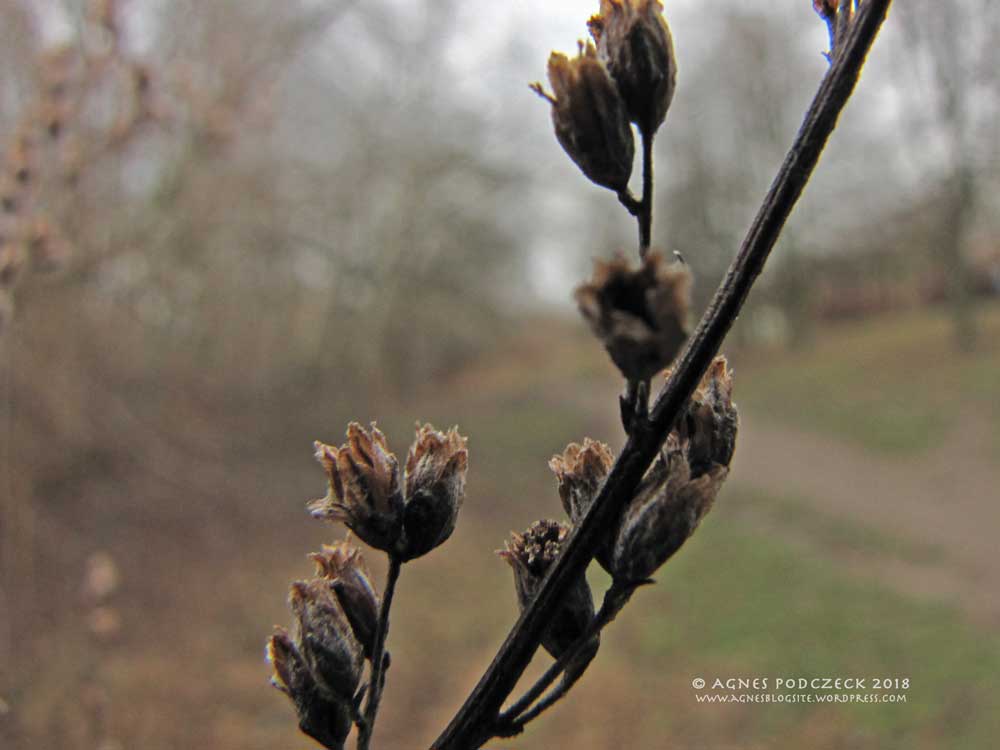 Die Farbe dieses Winters ist bisher dunkelbraun und schwarzgrau. Aber bei genauem Hinsehen finde ich dennoch zarte Formen und Schönheiten, wahre Schätze, die mir das Herz erhellen.