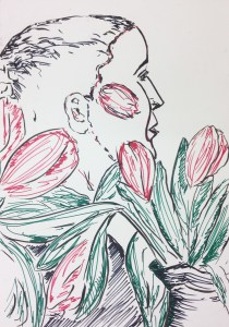 Portraitzeichnen – Frau mit Tulpen