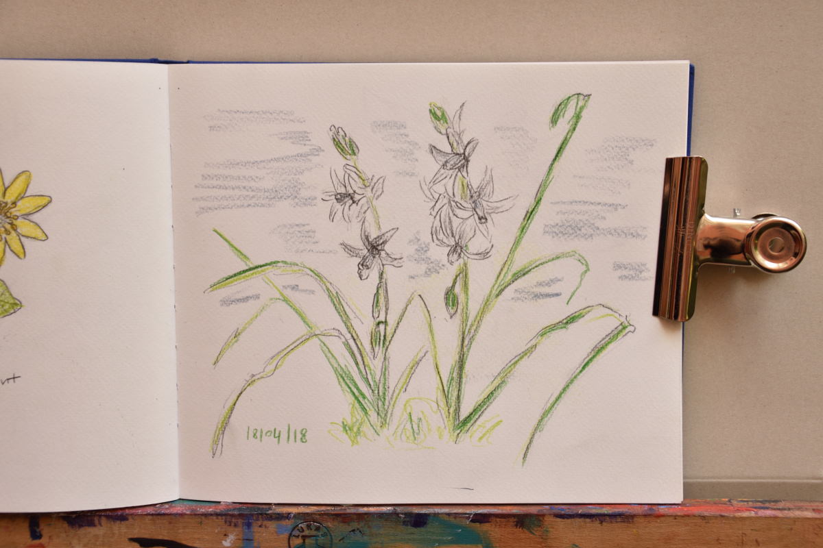 20180425_572_BG Mai 2, 2018 Ein kleiner Blick in mein Draußen-Skizzenbuch (2) 1200 × 800 Nickender Milchstern, Bleistift, Aquarellbuntstifte