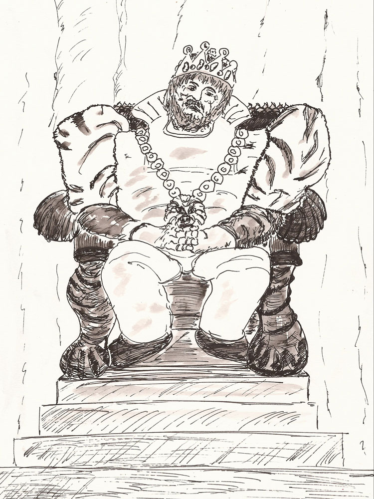 Ach! Was für ein Hans Wurst aus ihm geworden ist! Seine Diener hieven ihn morgens auf den Thron und dort sitzt er sich dann den ganzen Tag den Hintern wund, während die Höflinge sein Königreich ruinieren. Wenn er doch nur einen Sohn hätte, einen würdigen Thronnachfolger. Der hätte die ganze Bagage zum Teufel gejagt.