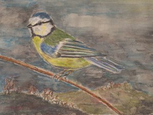 Blaumeise – Aquarellbuntstifte und Wasserpinsel