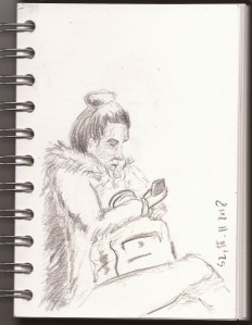 S-Bahn-Skizzen, Zeichnung von Agnes Podczeck, Skizzenbuch A5, 15.11.2018