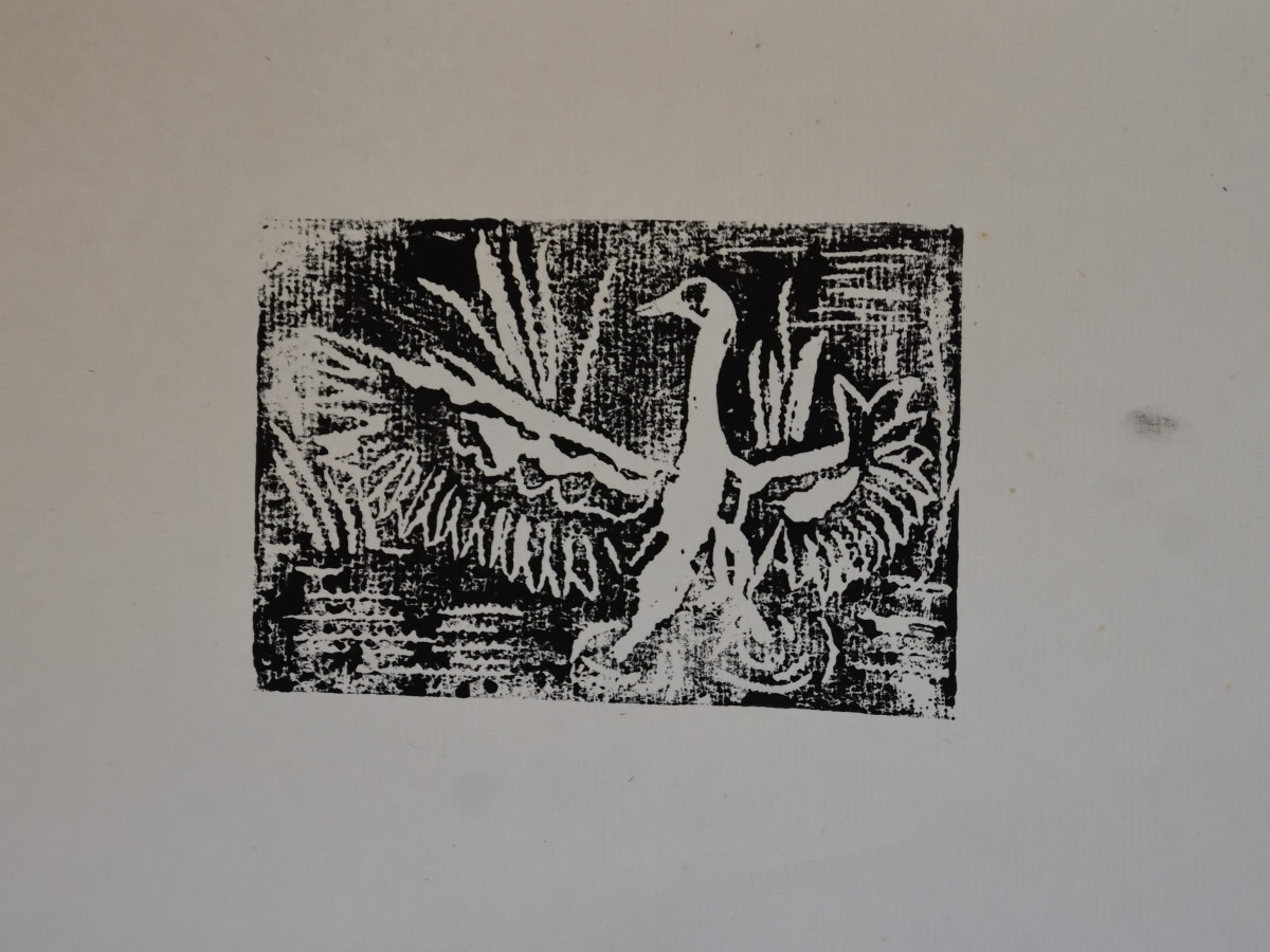 Tänzer am Teich, Linoldruck, Dezember 2018