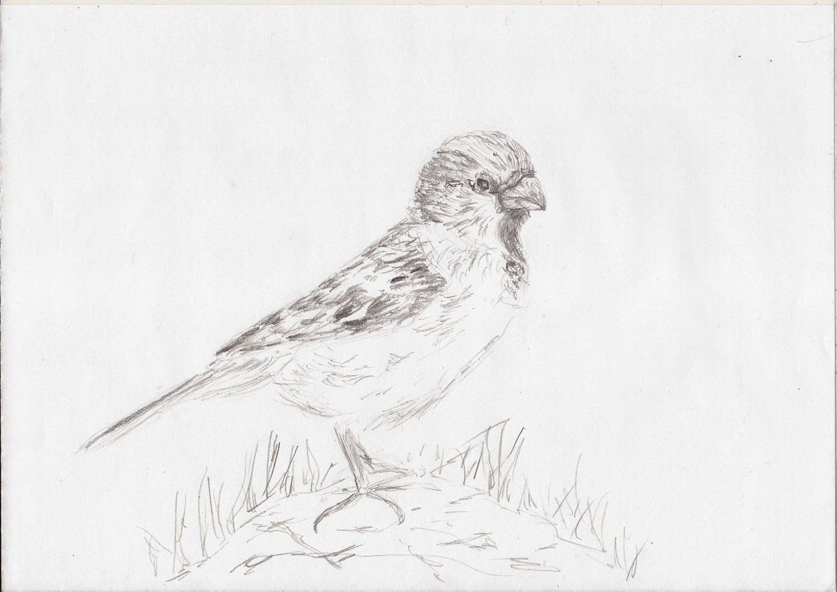 Zahlenmäßig stärkste Wintervogelpopulation: der Haussperling und dem wollte ich heute zeichnerisch Rechnung tragen.