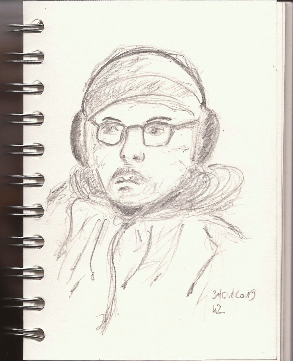 Manchmal fürchte ich, dass sich Menschen durch mein Zeichnen bedrängt fühlen könnten, dass ich gewissermaßen ihre persönliche Grenze übertrete. Aber ich bemühe mich, niemanden anzustarren und zu verunsichern, niemanden vorzuführen oder bloßzustellen und meist reagieren die Gezeichneten, falls sie mich bemerken, oder die Umstehenden, positiv.