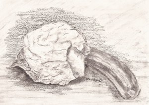 Zeichenübung: Blumenkohl und Zucchini, Grafitstift auf A4-Papier, 09.02.2019