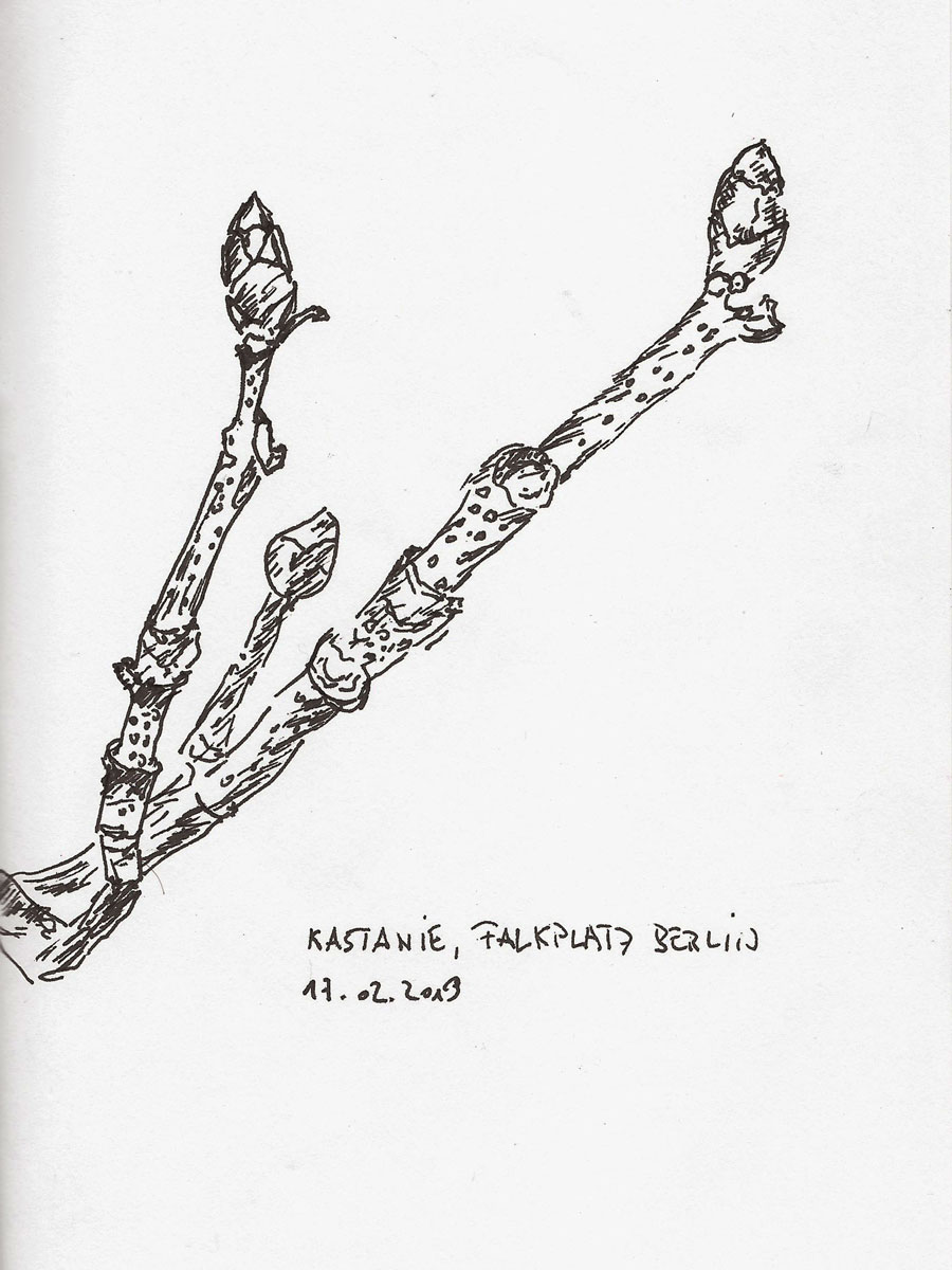Die untere Zeichnung stammt vom Sonntag und zeigt eine Kastanienblütenknospe.