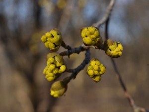 Heute schaute ich noch einmal bei den Sträuchern am Falkplatz vorbei. Aus der Ferne leuchten die Kornellkirschensträucher schon in ganz zartem gelb, aber die Knospen sind noch immer sehr klein und kaum geöffnet.