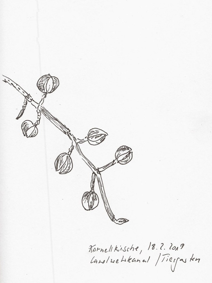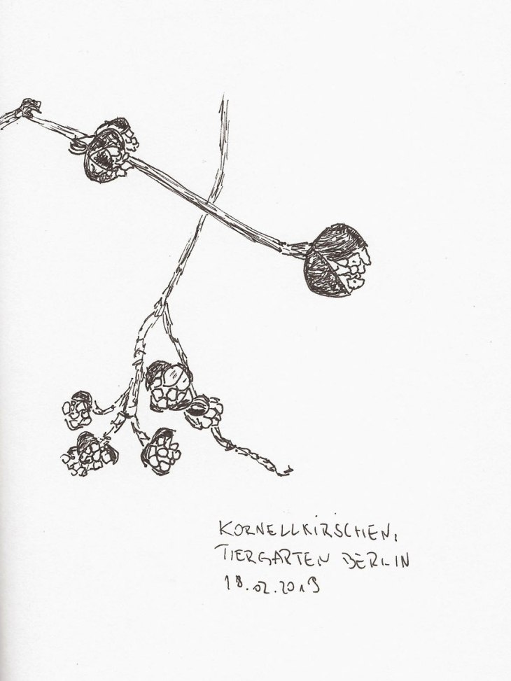 Die Kornellkirschsträucher am Falkplatz im Prenzlauer Berg hatten am Wochenende noch so kleine Knospen, dass ich sie gar in Großaufnahme gar nicht scharf abbilden hätte können. Auch die Sträucher im Humboldthain schienen mir noch in Winterruhe.