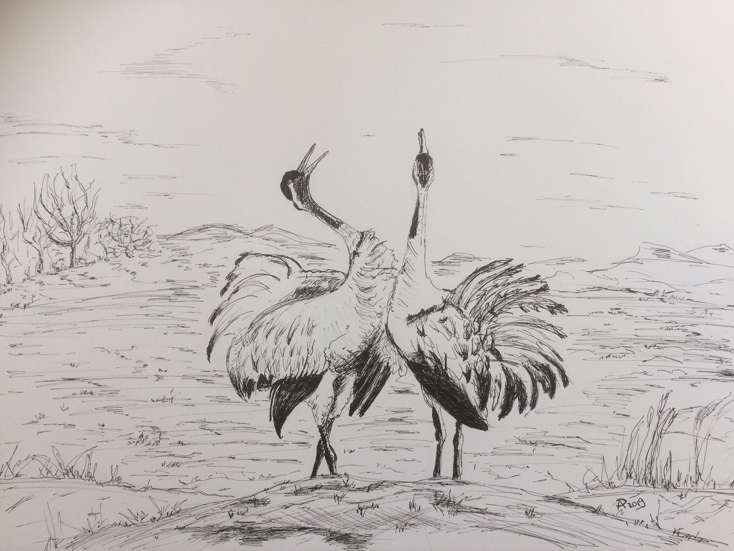 Zwar habe ich bereits hier und da einen Kranich aufs Papier gebracht, aber ich will mit diesen beiden stolzen Tieren beginnen als wären sie die ersten. Sie seien Kranich eins und zwei meiner #1000Kraniche.