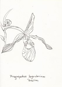 Orchidee, Blüte, Zeichnung mit Fineliner, Notizbuch A5, 01.04.2019