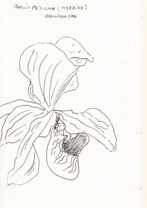 Orchidee, Blüte, Zeichnung mit Fineliner, Notizbuch A5, 01.04.2019