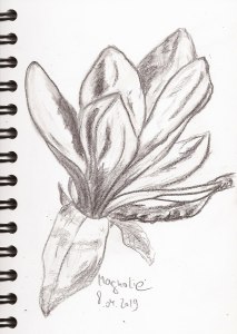 Magnolienblüte, Zeichnung, Skizzenbuch am 8.4.2019, Bleistift