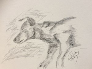 ruhender Hund, Bleistiftskizze, Format A4, 19.5.2019