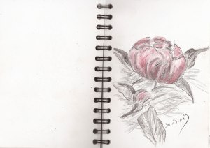 Pfingstrose, Bleistft und Buntstift, Skizzenbuch, 30. Mai 2019