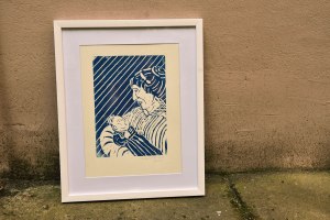 Mutter, Linolschnitt A4 auf A3-Papier, gerahmt mit Passepartout, Juni 2019