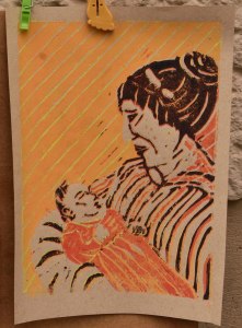 Linolschnitt „Mutter“ als Mehrfarbdruck