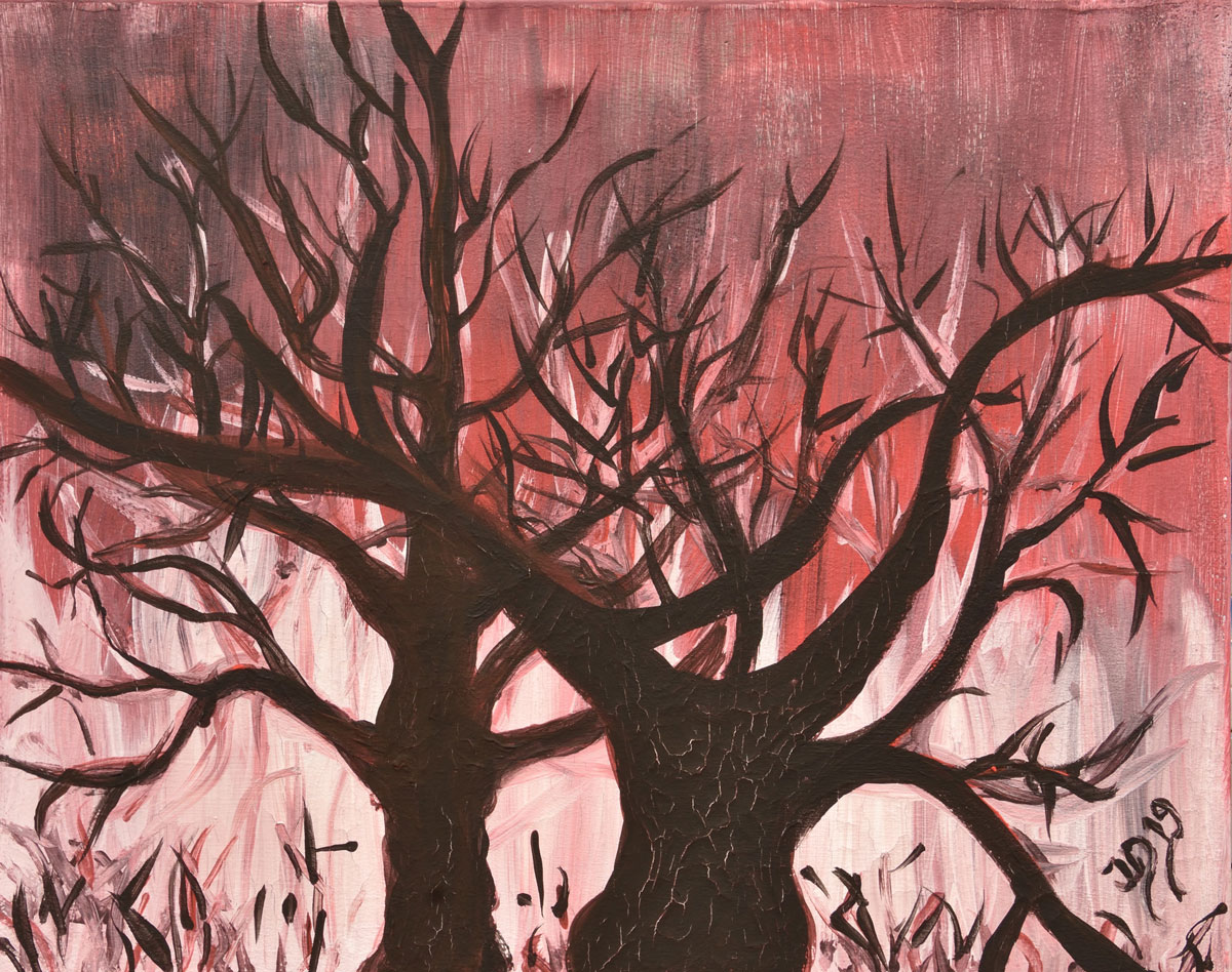 Zur momentanen Hitzewelle in Mitteleuropa und angesichts der Feuer, die dieser dieser Tage wieder auflodern, passt das unten gezeigte kleine Gouache-Gemälde, das – wie „Pandora“ – ebenfalls in der ersten Junihälfte entstand. Selten weiß ich meine kühle Erdgeschosswohnung so zu schätzen wie diese Woche. Kommt Ihr kühlen Kopfes durch die tropische Nacht und den morgigen Gluttag.