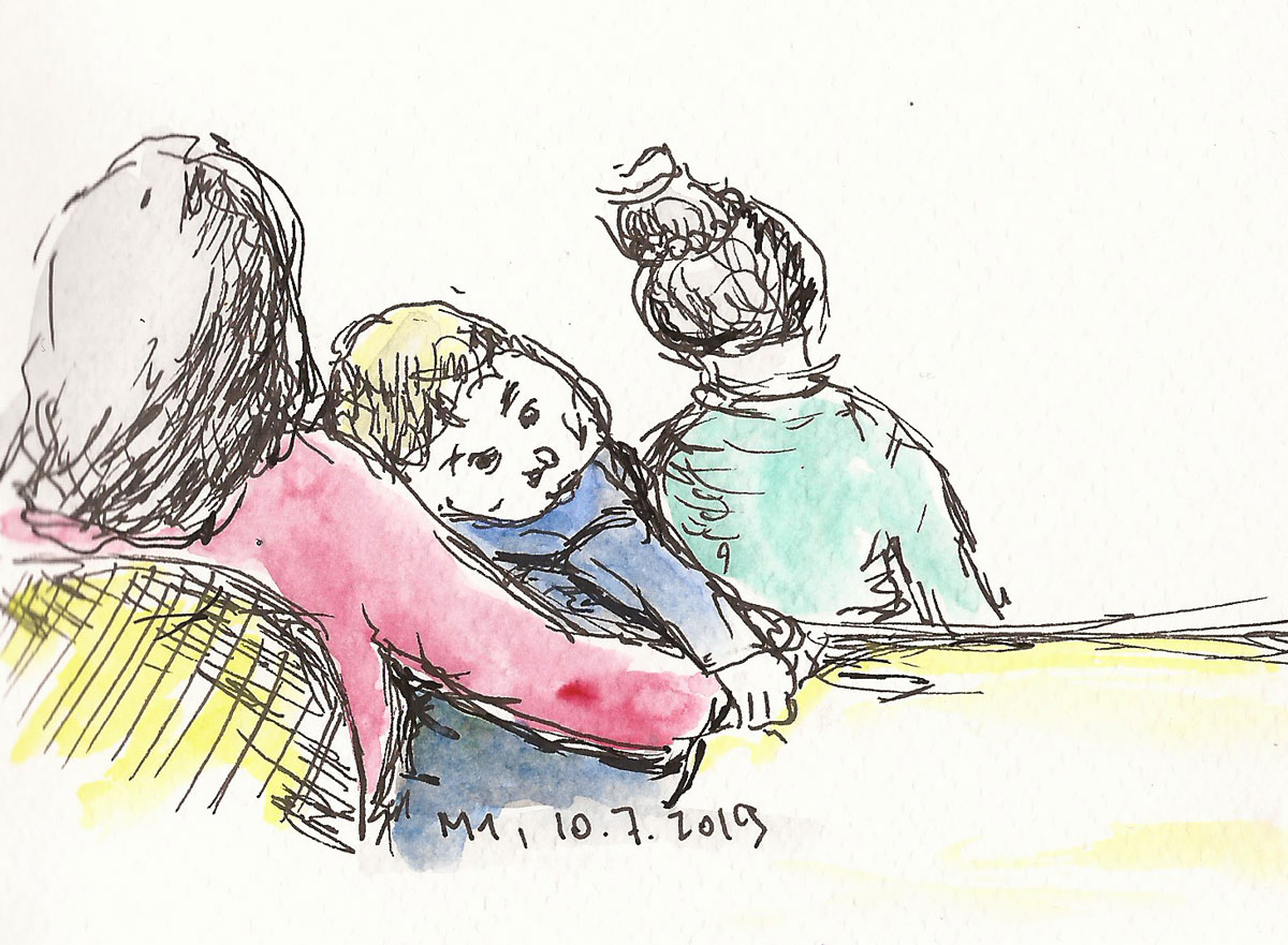 201907010_M10AusBG Juli 12, 2019 Farbe im Skizzenbuch: Am Landwehrkanal und in der Straßenbahn 1200 × 881 Kleines Aquarellskizzenbuch, 10,5*14 cm, 10.7.2019