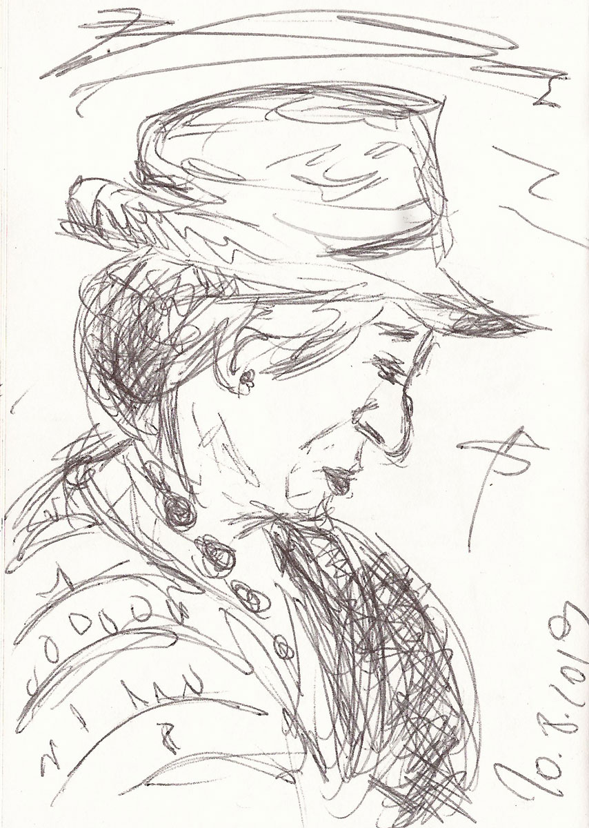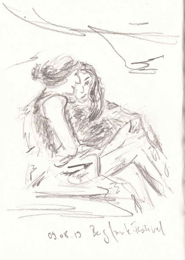 Wir hatten uns etwas abseits der Menge, aber dennoch mit hervorragendem Blick auf eine Bühne bzw. das Publikum der anderen, eingerichtet, sodass ich Muße und Gelegenheit zum Zeichnen hatte.