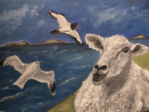 Ölgemälde in Arbeit: Schaf auf dem Deich