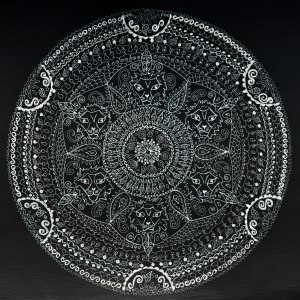 Mandala, Tuschefüller auf Aquarellpapier, 48*46cm, quadratischer Ausschnitt