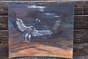 1000 Kraniche. Gouache auf Papier