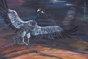 1000 Kraniche. Gouache auf Papier