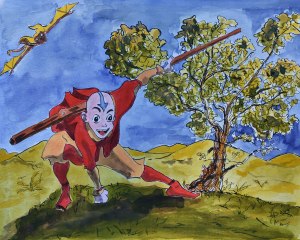 Fan-Art: Avatar Aang, Tusche, Feder und Pinsel, Dezember 2019
