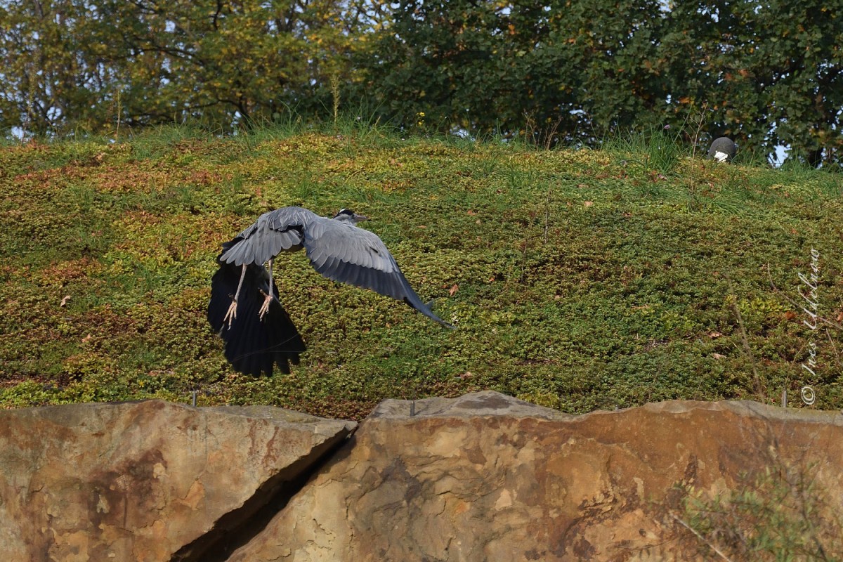 Diese Fotos eines Graureihers, der im Berliner Zoo und Umgebung sein frei gewähltes Revier hat, aus dem vergangenen Herbst, wären fast im Archiv gelandet, wenn sie mir nicht beim Sortieren meiner Fotografien und Zeichnungen um den Jahreswechsel herum wieder aufgefallen wären. Stolz und frei fliegt er von Gehege zu Gehege, lässt sich nieder, wo es ihm passt und beobachtet Mensch und Tier. Besonders schätzt er natürlich die Anlagen der Robben und Pinguine, wo bestimmt immer mal wieder ein Fischlein für ihn abfällt.