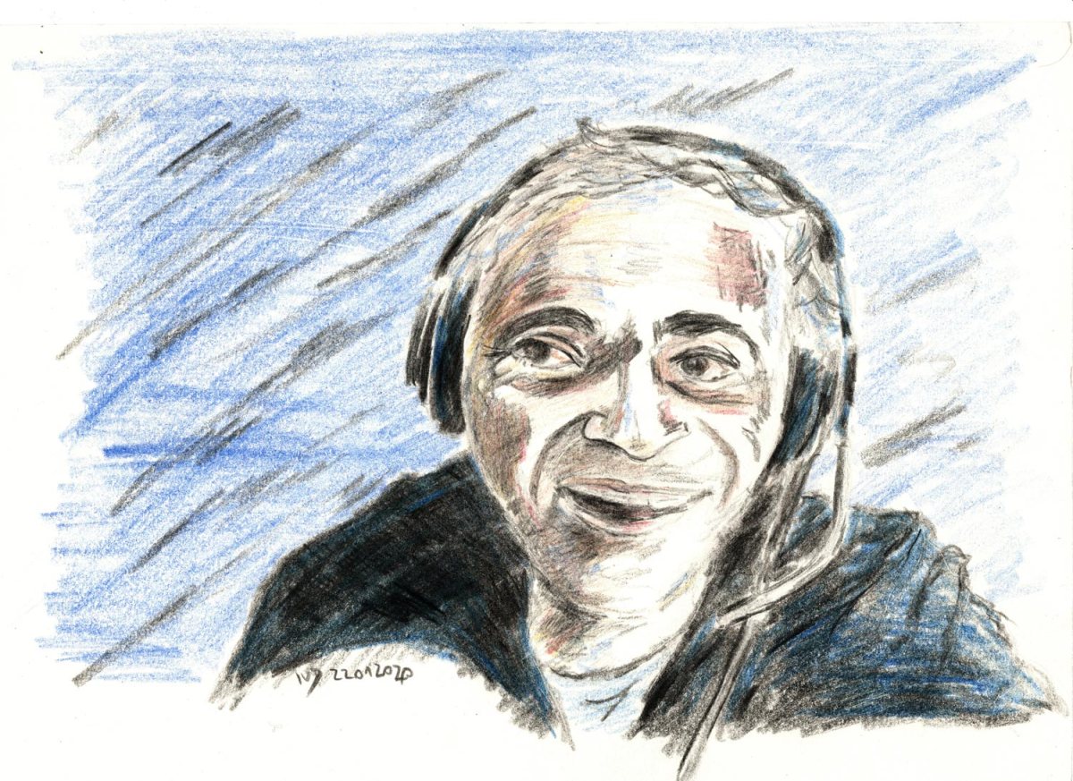 Da ich gerade das Buntstiftzeichnen für mich ausprobiere, hat auch Jürgen Kuttners Portrait ein wenig Farbe abbekommen.