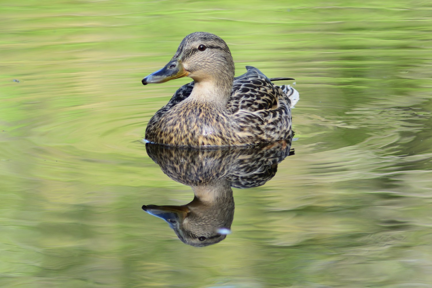 Eine weibliche Stockente – der Färbung des Gefieders nach sind Entenweibchen zwar unscheinbarer als die Erpel. Jedoch – ist dieses Muster nicht elegant? Eine richtige Dame, finde ich.