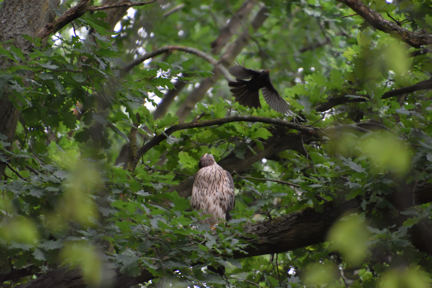 20200618_Habicht_282 Juni 26, 2020 Stadt und Natur. Die Amsel und der Habicht 1500 × 1000 Junger Habicht und schimpfende Amsel, Humboldthain, Berlin Wedding, 18.06.2020, © Ines Udelnow