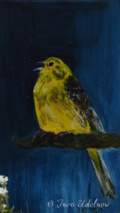 Kunst auf Zigarrenkistenbrettchen. Goldammer