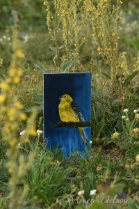 Kunst auf Zigarrenkistenbrettchen. Goldammer